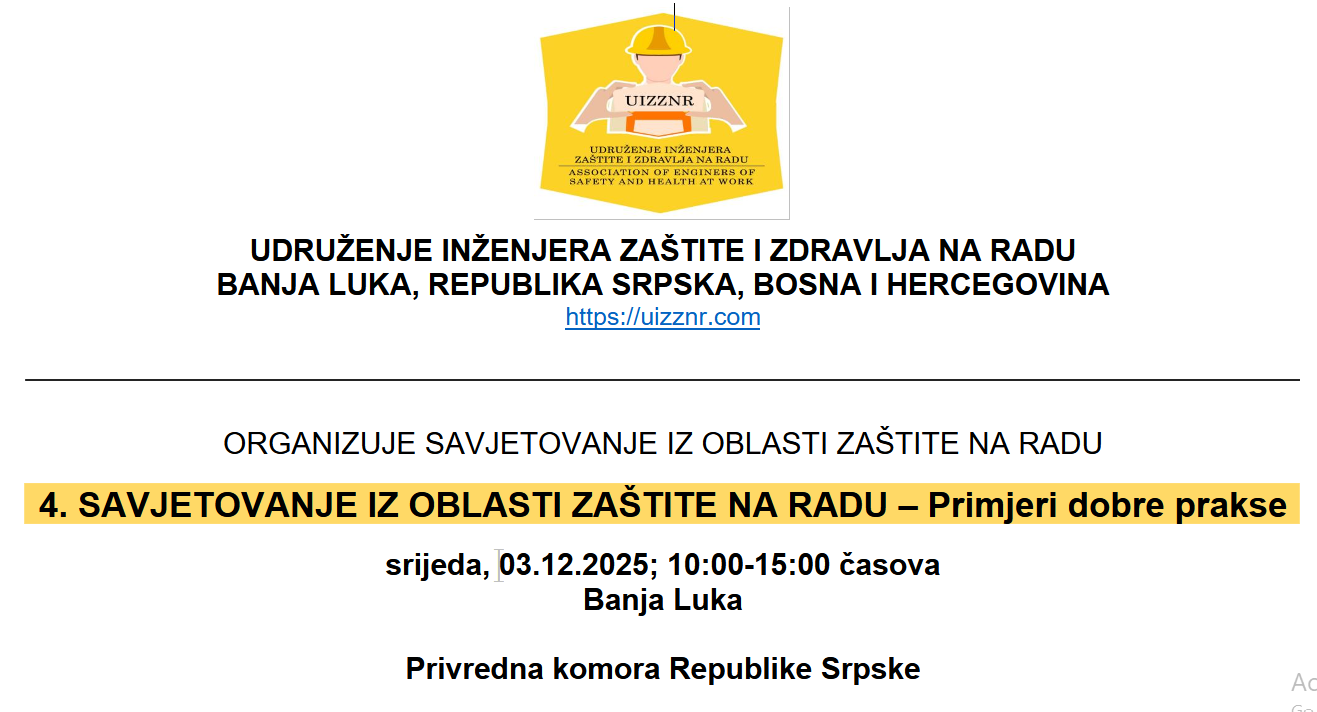 Nevladina organizacija “Udruženje inženjera zaštite i zdravlja na radu”, Banja Luka.